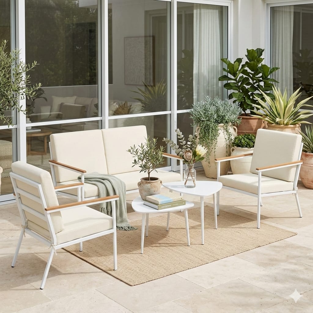 - Capacidade: Sofá suporta 240kg, poltronas 120kg cada, mesas 30kg
